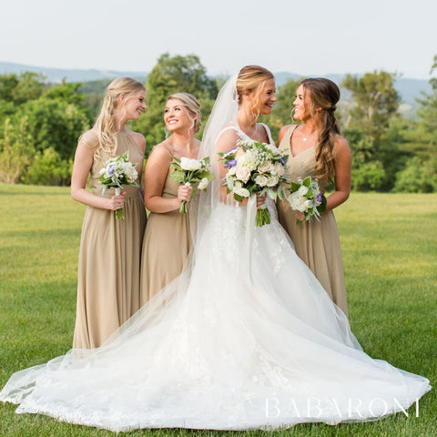 Acquista gli abiti da damigella d'onore di Duntery in Champagne. Abbina perfettamente l'intero tema del tuo matrimonio.