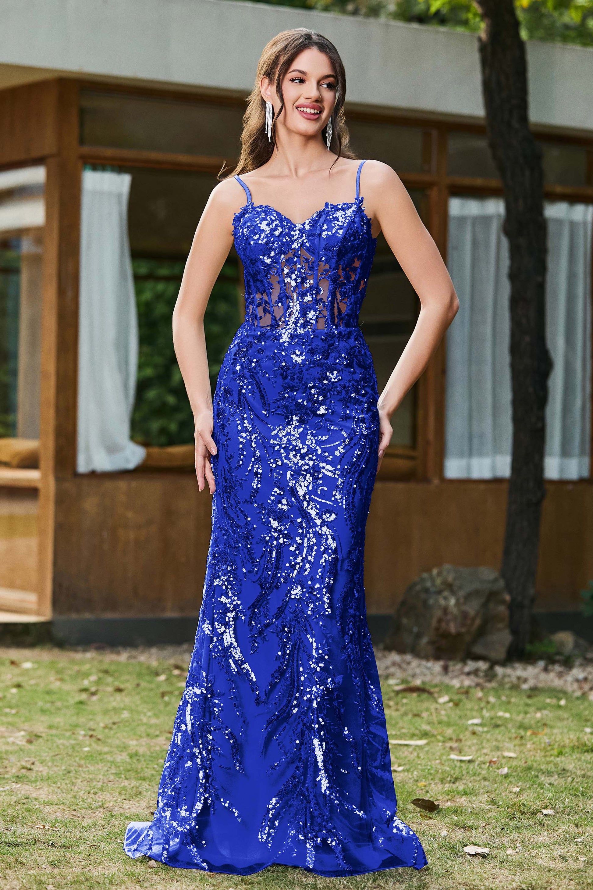 Emanando eleganza romantica, questo abito bodycon presenta un busto trasparente e scollo a cuore. Abbellito con paillettes e perline, aggiunge un tocco di scintillio glamour. Le spalline sottili completano il look sofisticato, mentre la schiena con lacci garantisce una vestibilità perfetta e regolabile.