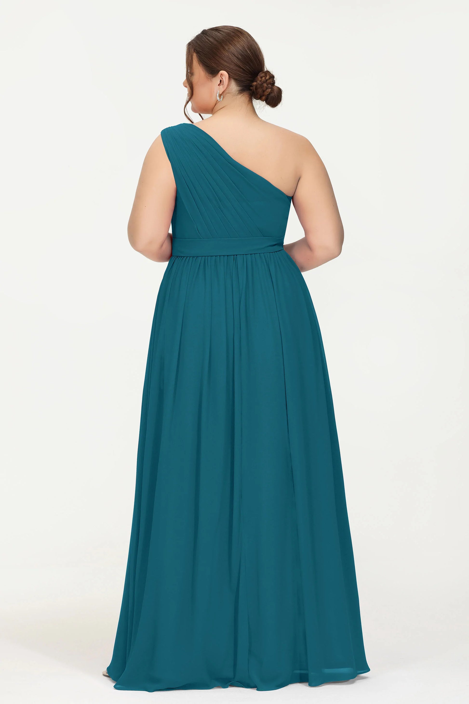 Abito Taglia Maxi plus in Chiffon Semplice Pieghettato a Una Spalla