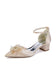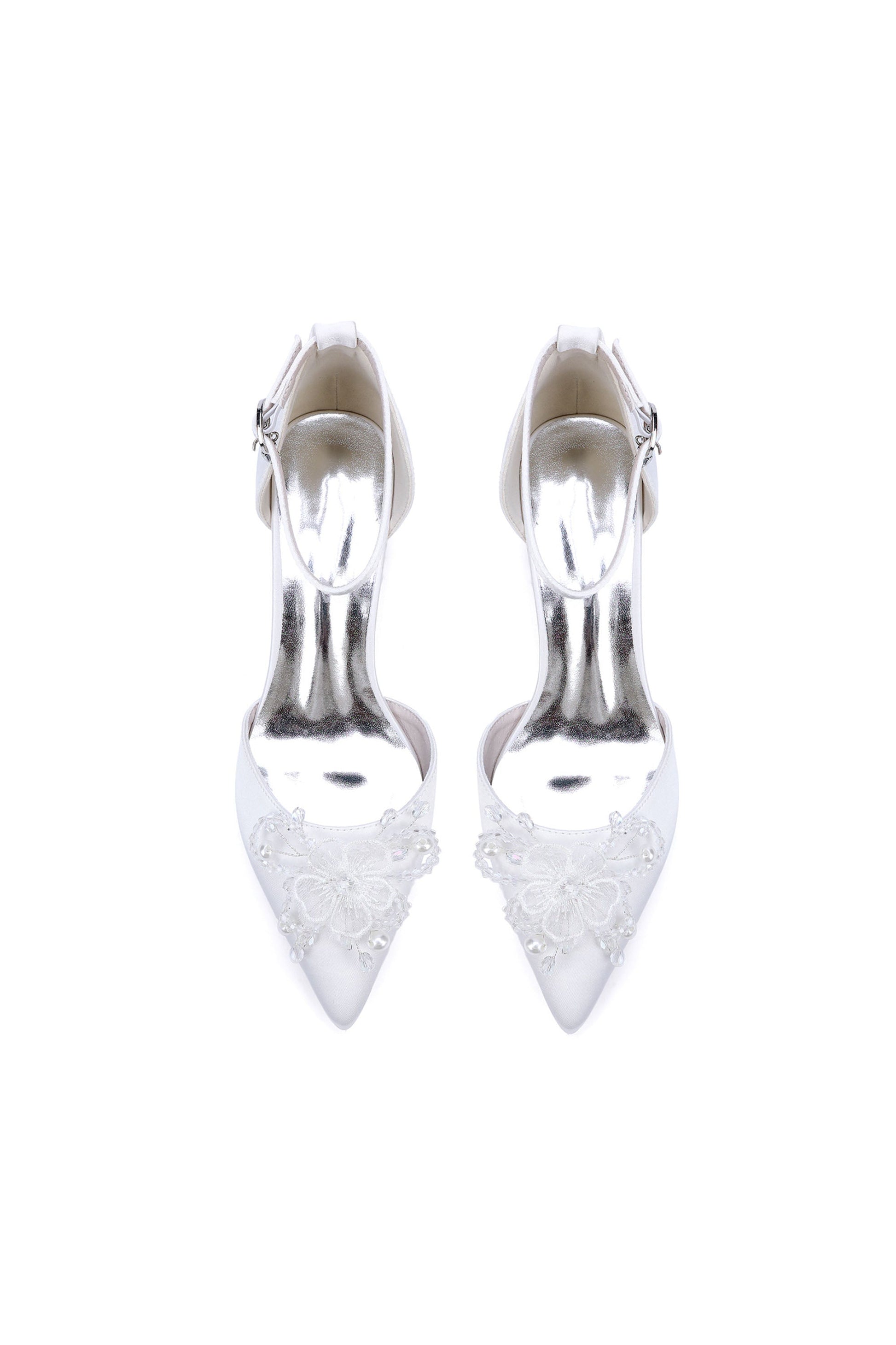 Décolleté a punta con fiori di perline e perle, tacco grosso